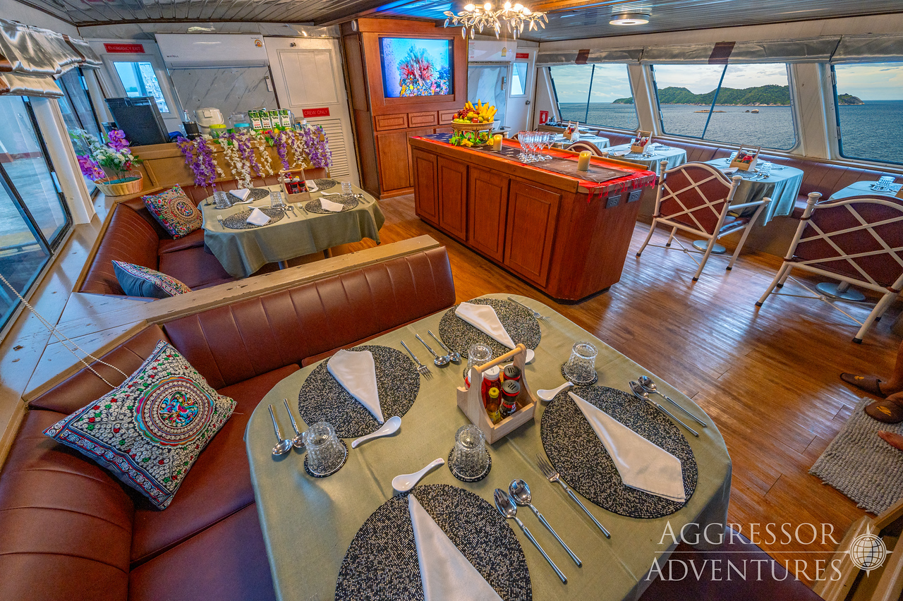 Die komfortablen Unterkünfte für 16 Gäste umfassen 8 geräumige Kabinen, jede mit unabhängiger Klimaanlage, eigenem Bad und Dusche, Panoramafenster oder Bullauge, Spiegelschrank, Haartrockner und frischen Handtüchern. Jede Kabine verfügt über einen 22-Zoll-Flachbildfernseher mit einer Festplatte mit einer Auswahl an Filmen, 3 Masterkabinen mit Queensize-Bett (eine auf dem Unterdeck und zwei auf dem Hauptdeck) und 6 Deluxe-Kabinen auf dem Hauptdeck mit zwei nebeneinander liegenden Betten.