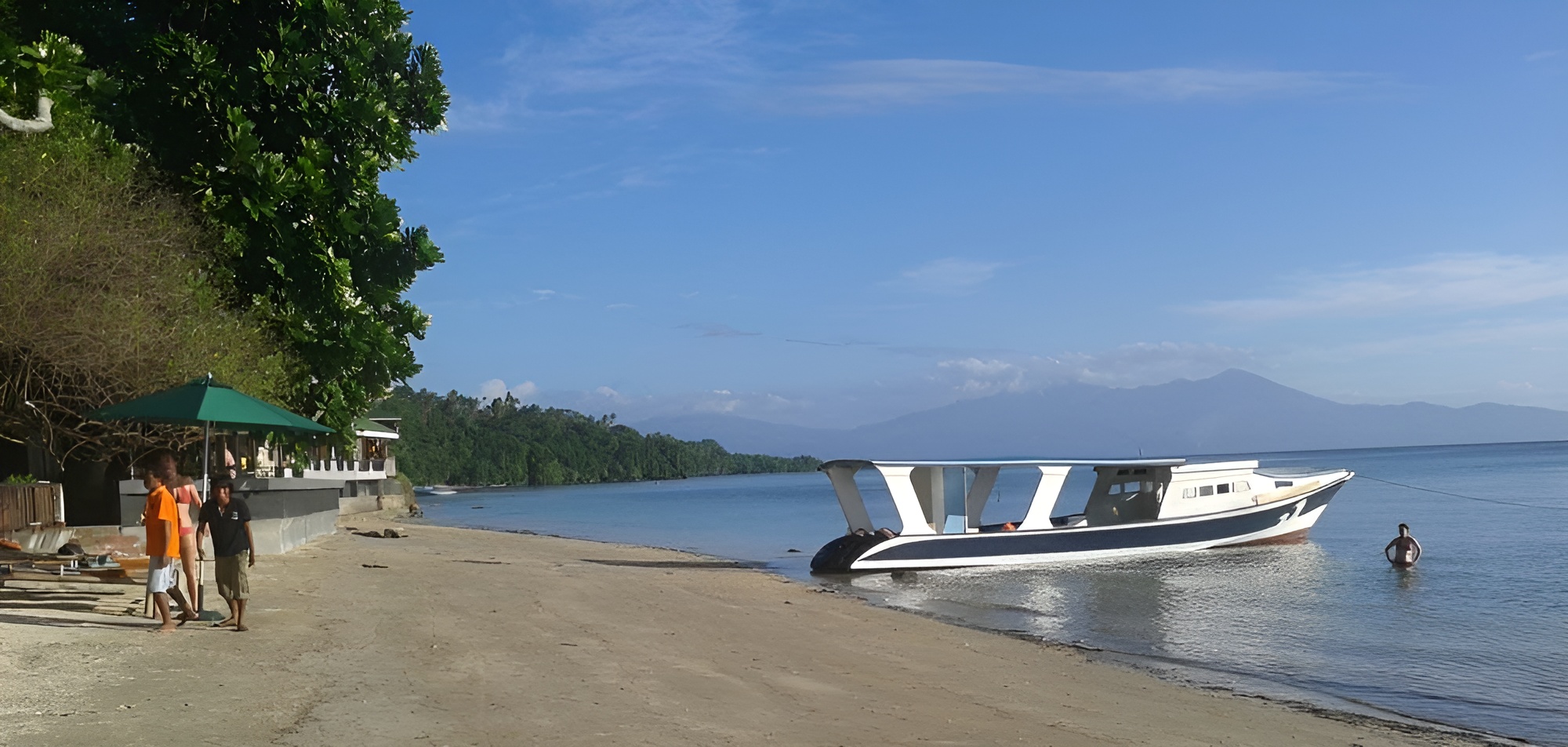 Das Resort liegt am Liang Beach, dem südlichen Teil der Insel, und bietet einen atemberaubenden Blick auf den Sonnenuntergang und verfügt über den längsten und unberührtesten Sandstrand auf Bunaken Island. Der Transfer vom Flughafen Manado dauert ca. 30 Minuten mit dem Auto und bringt dich zum Pier in Manado City. Von dort aus bringt dich eine 60-minütige Bootsfahrt direkt vom Festland zu unserem charmanten Resort auf der Insel Bunaken.