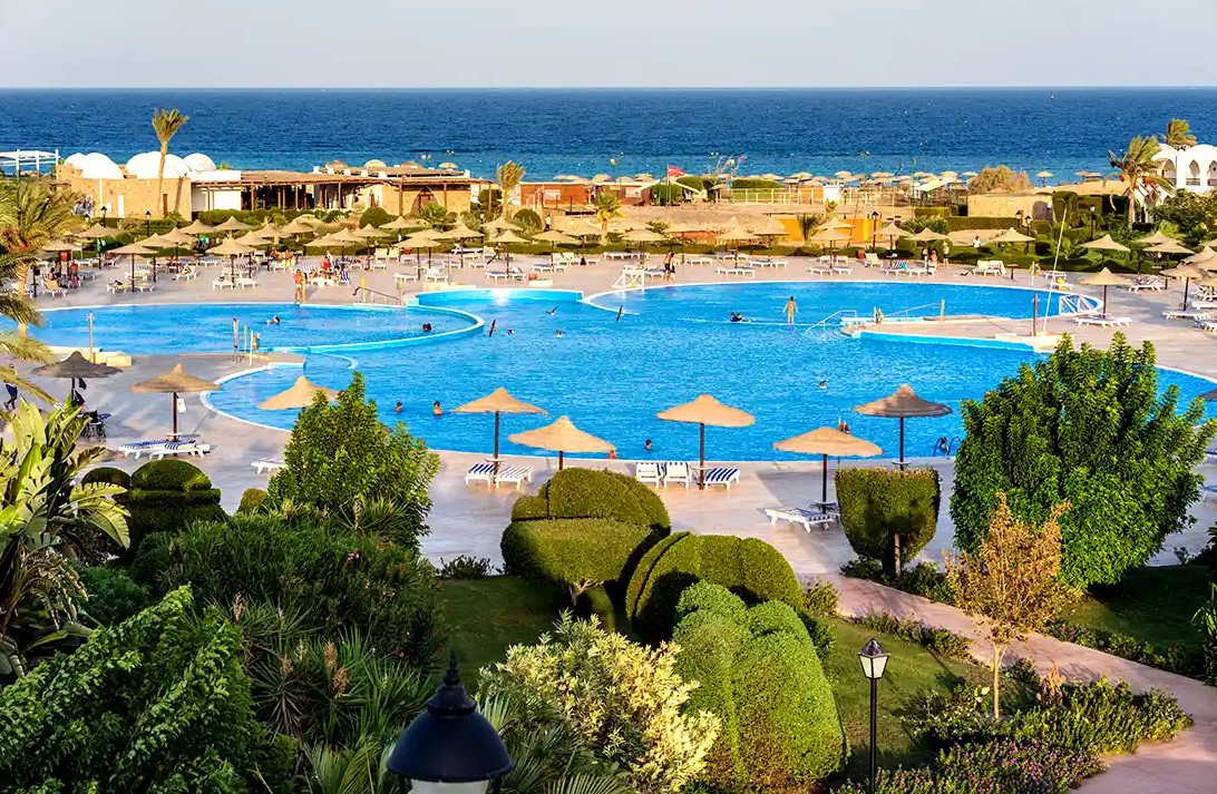 Die Anlage verfügt über insgesamt 350 Zimmer in 22 Gebäuden mit jeweils 16 Wohneinheiten. Sie bietet eine Empfangshalle mit Rezeption, ein Buffetrestaurant, ein italienisches À-la-carte-Restaurant, mehrere Bars, Café, Friseur, Shopping-Basar, Amphitheater und Discothek. In der gepflegten Gartenanlage befinden sich 4 Süsswasser-Swimmingpools (einer beheizbar), ein Kinderpool (ebenfalls beheizbar) und eine Pool-/Beachbar. Am hoteleigenen Strand und an den Pools stehen Liegen, Sonnenschirme und Handtücher kostenfrei zur Verfügung. Weiterlesen>>> Zimmer Anzahl: 350 Die gemütlich eingerichteten Zimmer (ca. 38 m²) verfügen über Bad/WC, Föhn, Telefon, Klimaanlage, Sat.-TV, Minibar, Safe, Schlafsofa und Terrasse oder Balkon mit Blick auf die herrliche Gartenlandschaft. Zusätzlich mit Meerblick oder zur Meerseite buchbar. Sport (inklusive - teils durch Fremdanbieter) Multisportplatz, Basketball, Tischtennis, Tennis (Flutlicht gegen Gebühr), Raquetball, Boccia, Fussball und Schach, Fitnessraum, Wassergymnastik Sport (nicht inklusive - teils durch Fremdanbieter) Billard, Tauchschule direkt am Strand, Kite Surfen. Verpflegung/Gastronomie Lassen Sie sich von einem der Restaurants kulinarisch verwöhnen. Das Hauptrestaurant "El Wadi" bietet ein abwechslungsreiches Buffet aus internationalen Gerichten. Das direkt am Strand gelegene italienische À-la-carte-Restaurant "La Vela" versorgt Sie mit feinsten mediterranen Gerichten. Ergänzt wird das Angebot durch eine Pizzeria mit typischen Holzofen und insgesamt sechs Bars. All inclusive (im Preis inklusive) Bei Ankunft ein "Begrüssungscocktail". Frühstück, Mittag- und Abendessen in Buffetform. Mehrmals pro Woche Themenabende. Langschläferfrühstück von 10:30-11:30 Uhr an der Poolbar. Tagsüber Snacks. Nachmittags Kaffee, Tee und Kuchen. Einmal pro Aufenthalt ist das Abendessen in beiden À-la-carte-Restaurants (Italienisch "La Vela" und Pizzeria) inklusive (Reservierung erforderlich). Diverse lokale alkoholische und alkoholfreie Getränke werden von 10-24 Uhr in Gläsern serviert. Wein ist nur zu den Mahlzeiten im Hauptrestaurant inklusive. Die Minibar wird täglich mit frischem Mineralwasser aufgefüllt. Unterhaltung Das Animationsteam bietet ein abwechslungsreiches Programm mit täglichen Spielen und Sportmöglichkeiten. Aktivitäten Tagsüber können verschiedene Sportangebote wahrgenommen werden. Ein fester Bestandteil der wöchentlichen Abendunterhaltung ist unter anderem eine spektakuläre orientalische Show. Wellness Der Spa-Bereich "Planet Spa" bietet einen Ort für Ruhe, Entspannung und Wohlbefinden in exklusiver Atmosphäre (gegen Gebühr). Im Wellness-Bereich finden Sie Sauna, Dampfbad, Tükisches Bad, eine Salzgrotte, einen Friseur und Beauty Salon mit diversen Anwendungen und Massagen (gegen Gebühr). Familien/Kinder Für die kleinen Gäste steht ein Miniclub (4-12 Jahre) zur Verfügung, der für jede Menge Spiel und Spaß sorgt. Honeymooner In vielen Unterkünften erhalten Hochzeitsreisende eine bevorzugte Behandlung. Sei es in Form einer kleinen Aufmerksamkeit in Zimmer, ein kostenloses Dinner, ein Upgrade auf eine bessere Zimmerkategorie etc. Teile uns im Anfrage Formular mit, falls es sich um eine Hochzeitsreise handelt. Wir werden das Hotel gerne entsprechend informieren! (Mehr Infos betr. Gültigkeit der Leistungen, Hochzeitsurkunde, etc. können wir dir gerne zukommen lassen.) Änderungen vorbehalten -