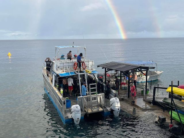 Ein Tauchparadies für Anfänger und erfahrene Taucher gleichermassen. Gelegen auf der Insel Taveuni, bietet die Basis Zugang zu über 40 atemberaubenden Tauchplätzen im berühmten Rainbow Reef. Hier erwarten dich bunte Weichkorallen, vielfältige Meereslebewesen und kristallklares Wasser. Die Basis verfügt über eine moderne Ausrüstung und erfahrene Tauchlehrer, die dir ein unvergessliches Taucherlebnis garantieren. Nach einem Tauchgang kannst du dich in der gemütlichen Lounge entspannen oder die tropische Umgebung geniessen.