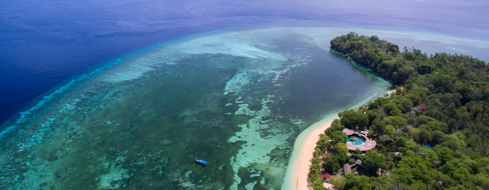 Die Tauchbasis befindet sich im Siladen Resort & Spa. Die Anreise erfolgt vom Flughafen Manado auf Sulawesi. Der Transfer dauert rund 50 Minuten mit dem Auto und anschliessend noch 40 Minuten mit dem Boot.