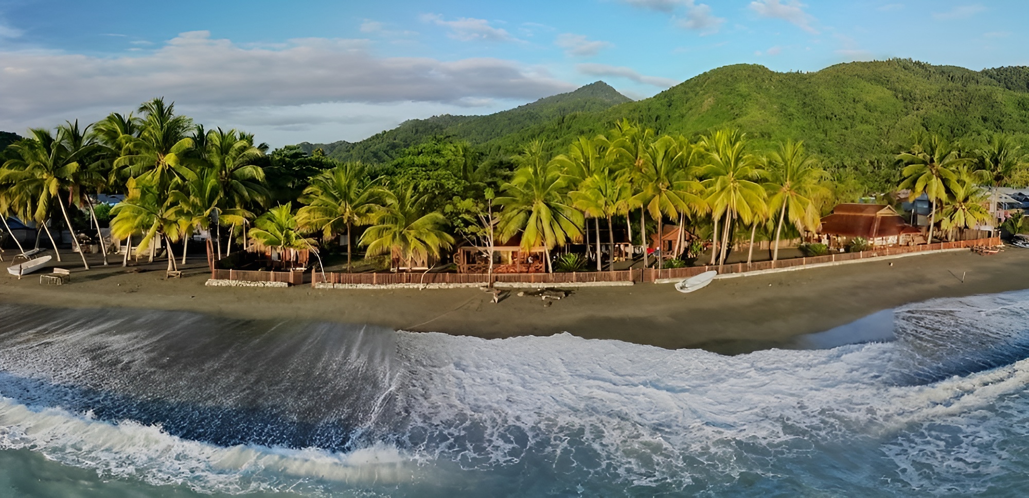 Die Tompotika Dive Lodge ist ein kleines Tauchresort mit nur fünf Bungalows an der noch wenig erschlossenen Ostküste Zentralsulawesis.Die Anreise erfolgt mit einem Inlandsflug ab Jakarta, Makassar oder Manado zur Provinzstadt Luwuk und einem anschließenden knapp dreistündigen Landtransfer zur Lodge.